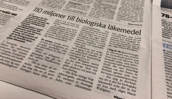 Skånska dagbladet and Sydsvenskan are writing about us and the project NextBioForm that we are part of!